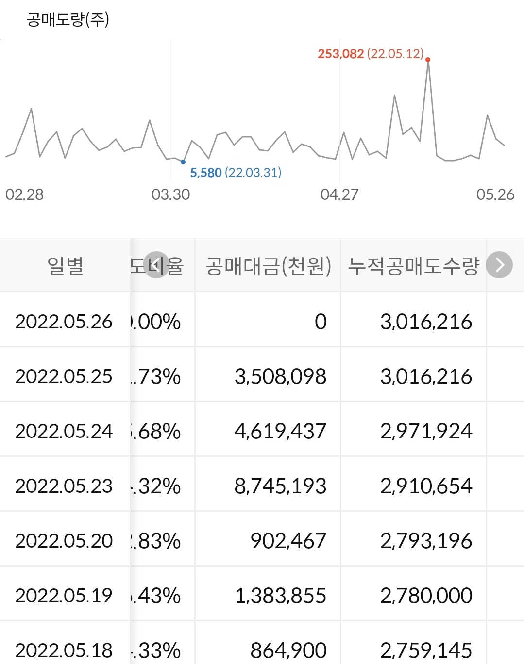 - 개인과 외국인이 610억, 116억을 매수하고 외국인이 -604억을 매도했습니다. 개인들은 고점에서 공격적으로 지분을 잘 줄였는데 그 이후에 주가가 하락 시기에 접어들자 다시 공격적으로 매수하는 모습을 보이고 있습니다. 외국인 투자자는 수급상 큰 변화는 없으며 기관투자자는 고점에서 매수한 물량 이상을 다시 개미에게 넘기며 지분을 줄이는 모습입니다.