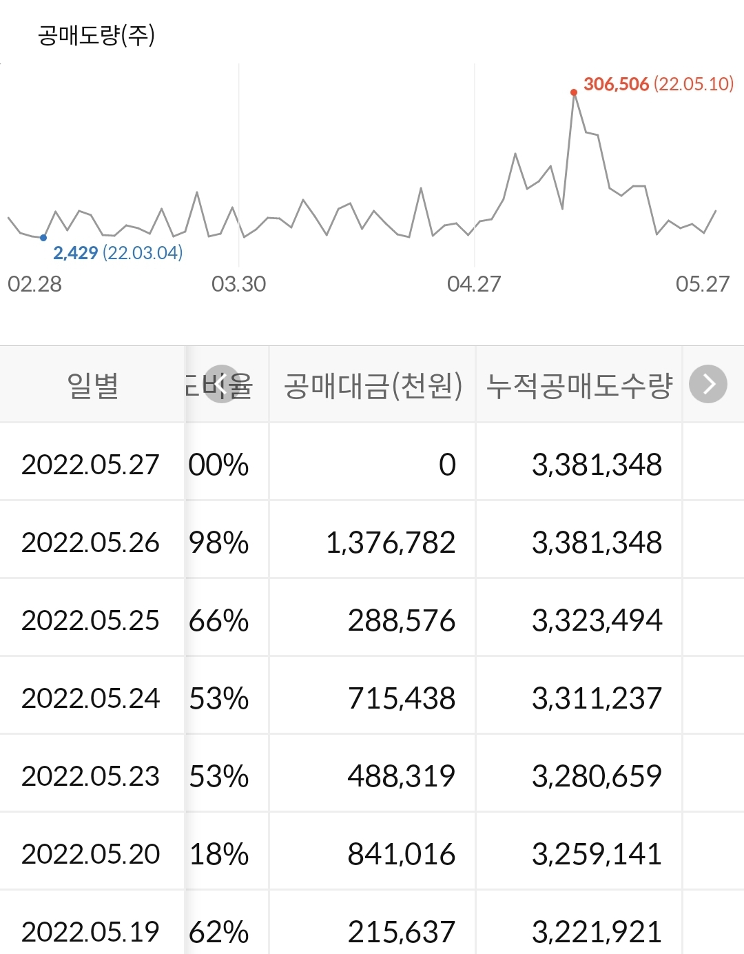2) 공매도 누적 수급