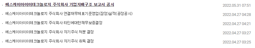 1) 종목명 : SK아이이테크놀로지
