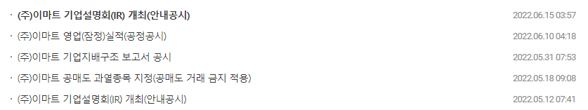 - 누적 공매도 금액은 1,400억으로 추산되며 이는 이마트 시총 2조 9,000억 대비 4.9%에 해당