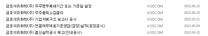 1) 종목명 : 금호석유