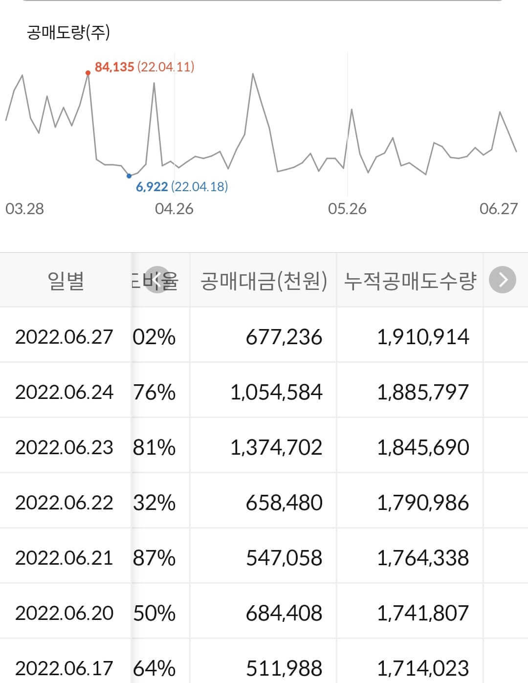 2) 공매도 누적 수급