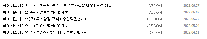 1) 종목명 : 에이비엘바이오