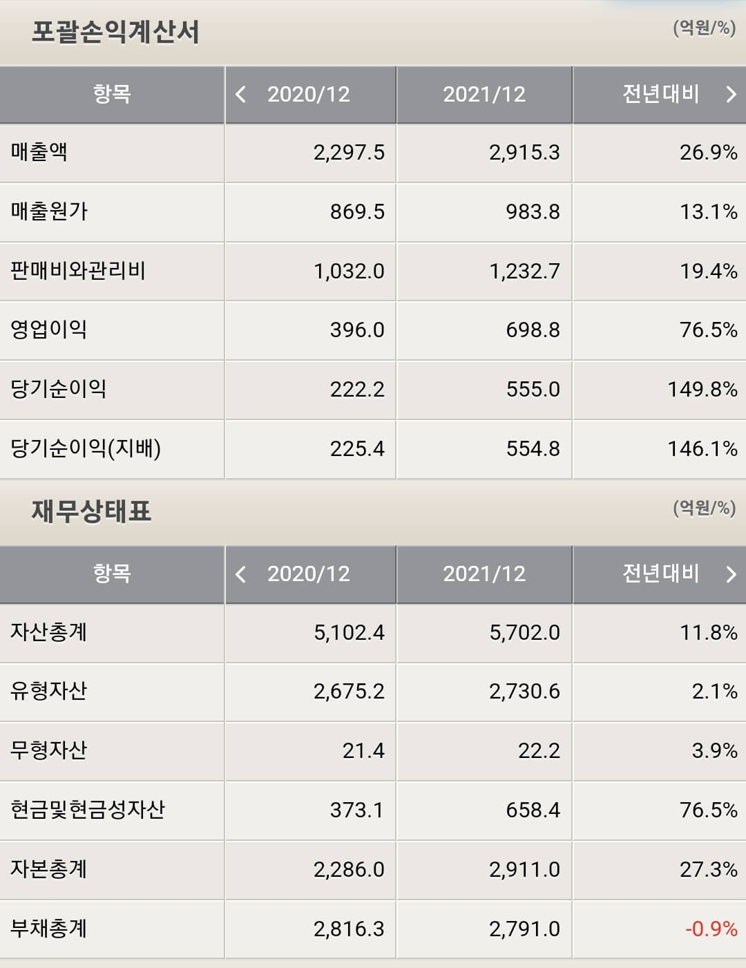 - 현금 658.4억(76.5% 증가)