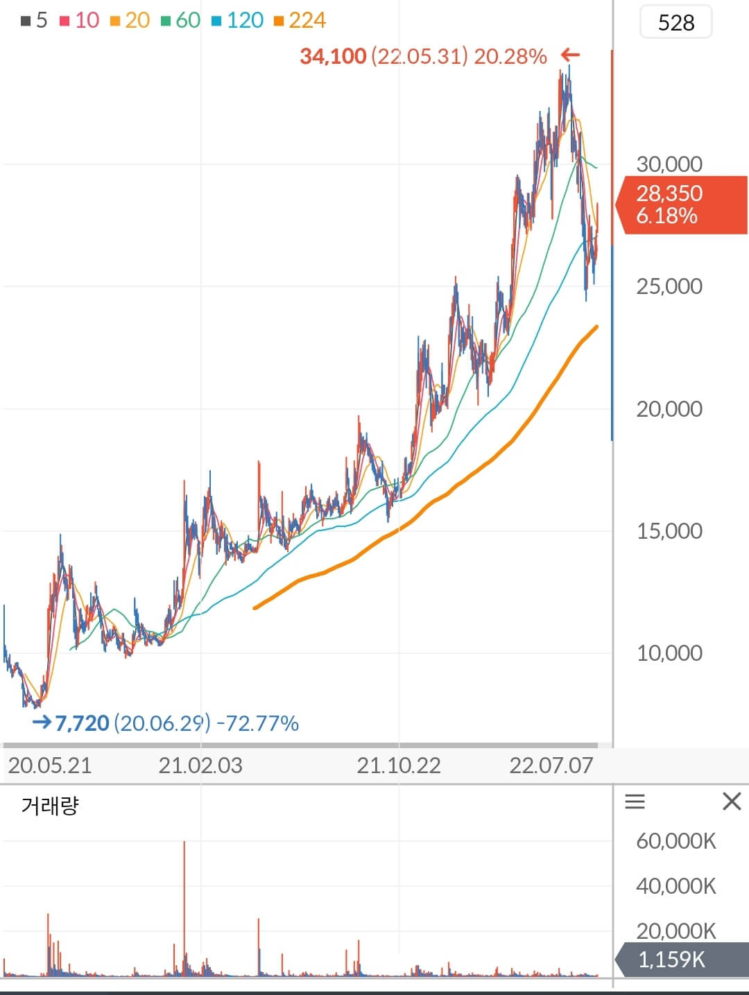 - 반도체 섹터 Peak-Out 우려로 조정 및 글로벌 지수 폭락 ▼ 주가 25,000원대 하락