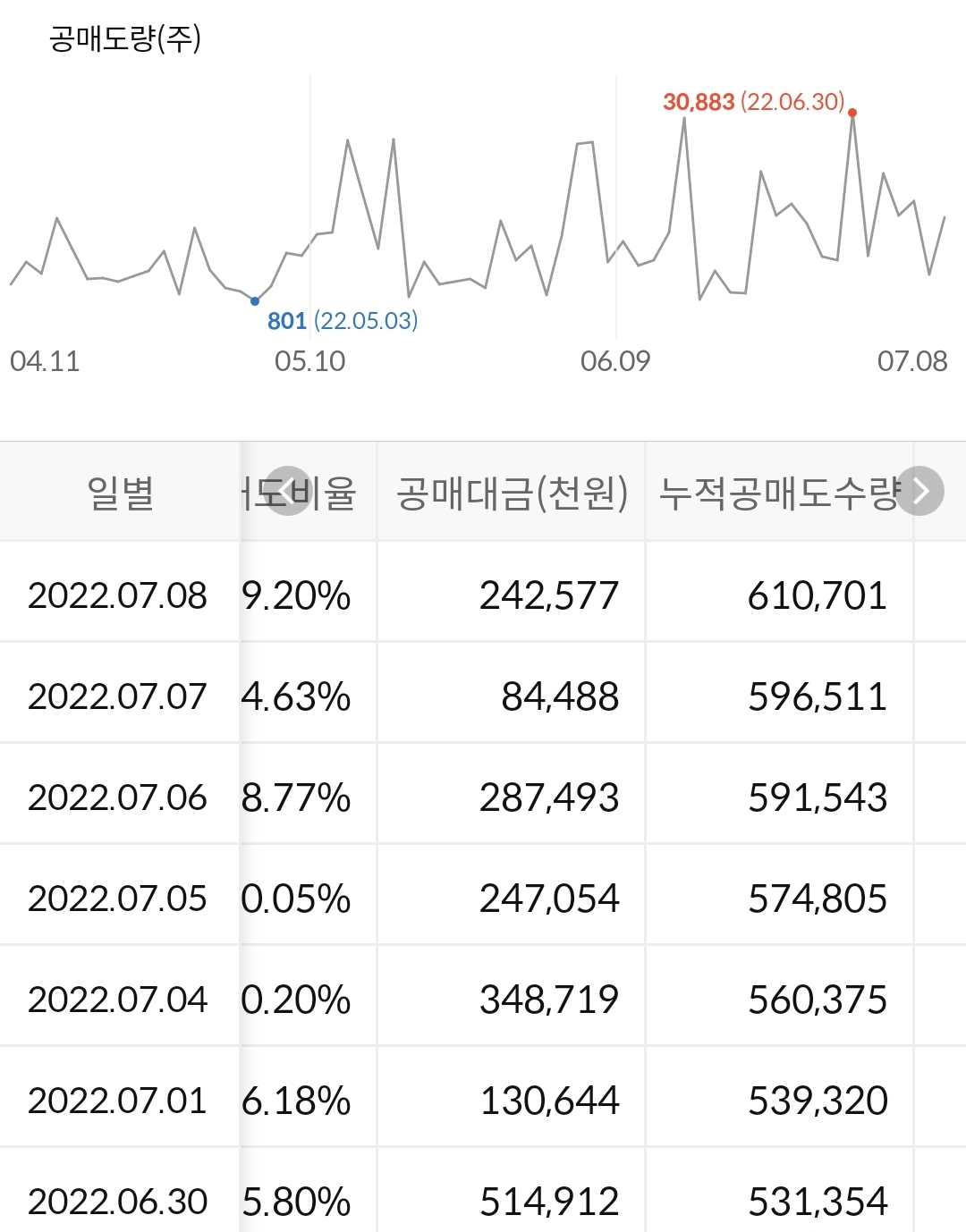 - 누적 공매도 금액은 140억으로 추산되며 이는 한올바이오파마 시총 9,000억 대비 1.5%에 해당