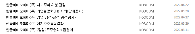 대한민국 코스피 시장에 상장된 한올바이오파마의 재무, 차트, 수급을 분석한 후 공시사항을 점검하고 이를 바탕으로 향후 주가 전망 및 목표 주가에 대해 알아보겠습니다. 세밀한 분석을 위해 다른 짜깁기 글에 비해 글과 숫자가 많지만, 읽는 것만으로도 여러분의 시간과 돈을 아낄 수 있으니 종목 매수 전 LIKEBEE를 검색 또는 즐겨찾기 등록해 분석자료를 확인해주세요. 혹시 다른 종목이 궁금하시다면 우측 상단에 검색창을 활용하시면 좀 더 빨리 자료를 찾으실 수 있습니다.
