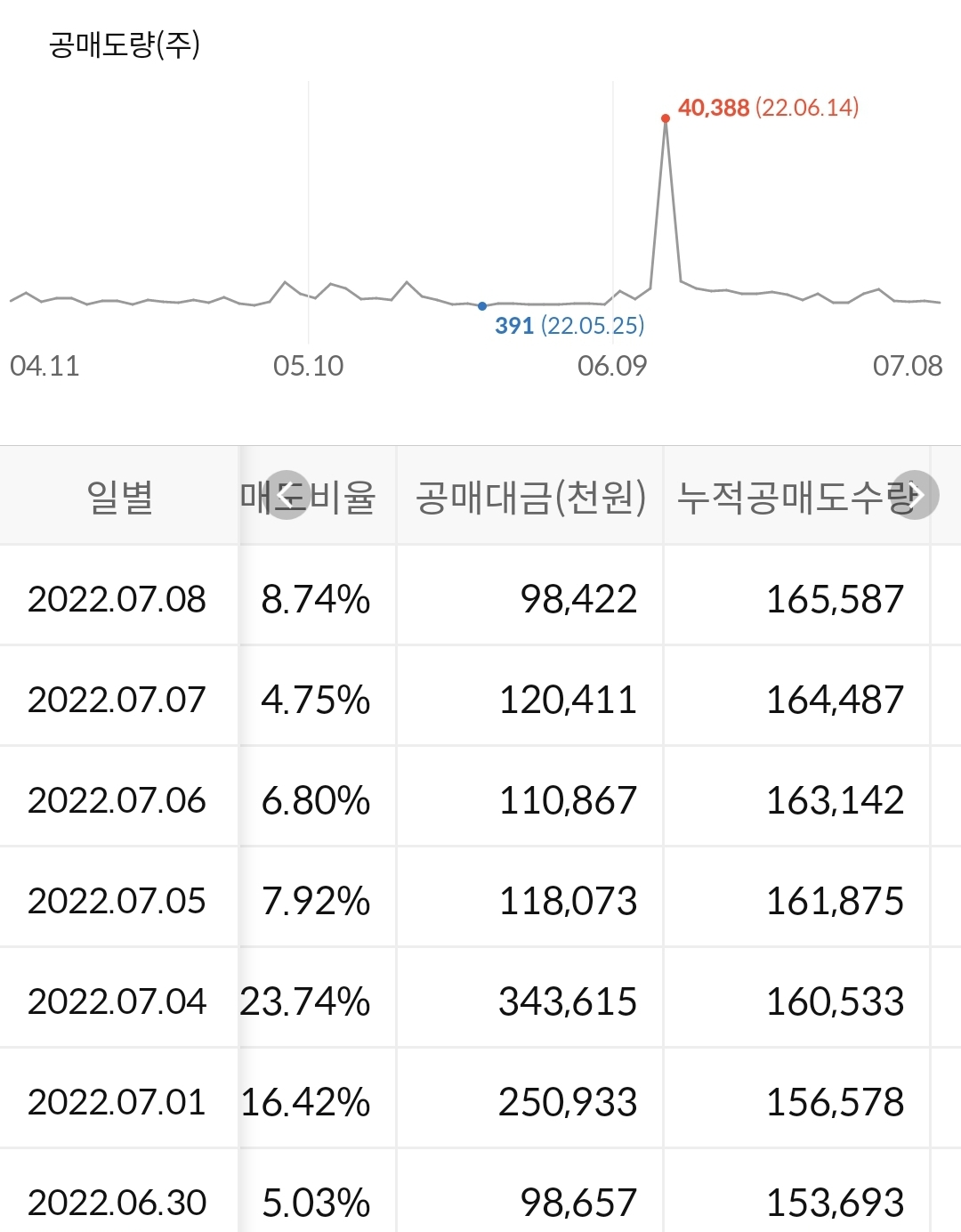 2) 공매도 누적 수급
