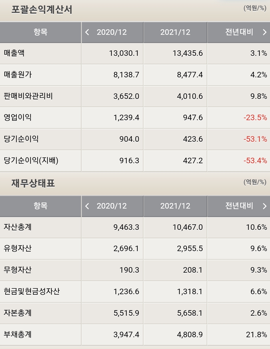 - 부채 4,808억(21.8% 증가)