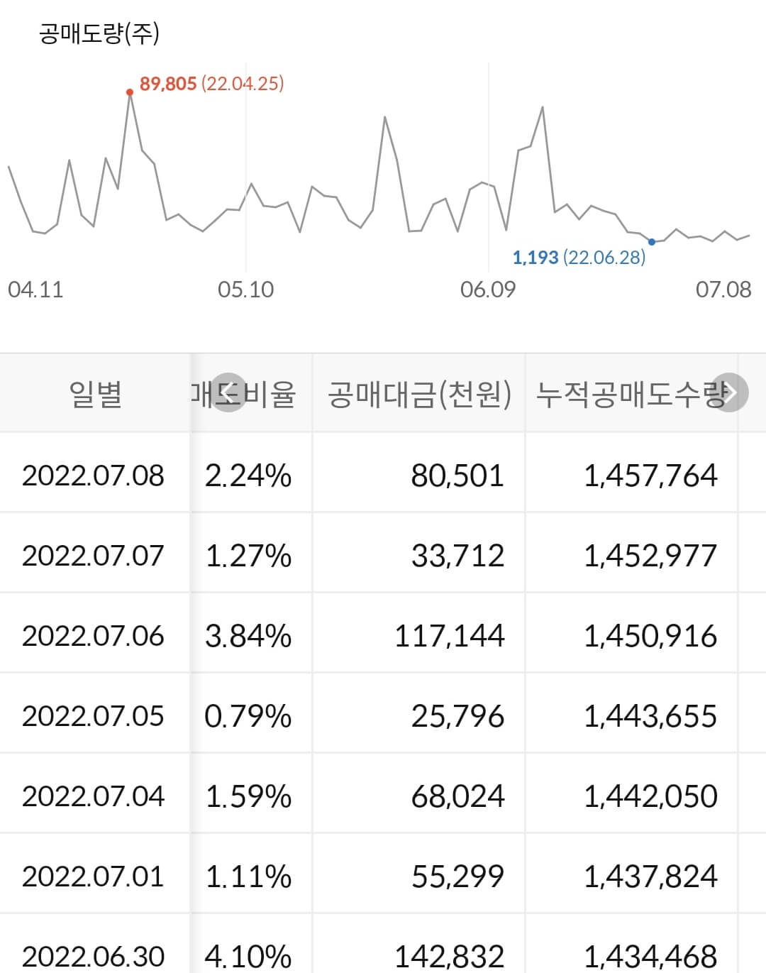 2) 공매도 누적 수급