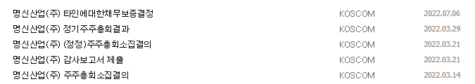 1) 종목명 : 명신산업