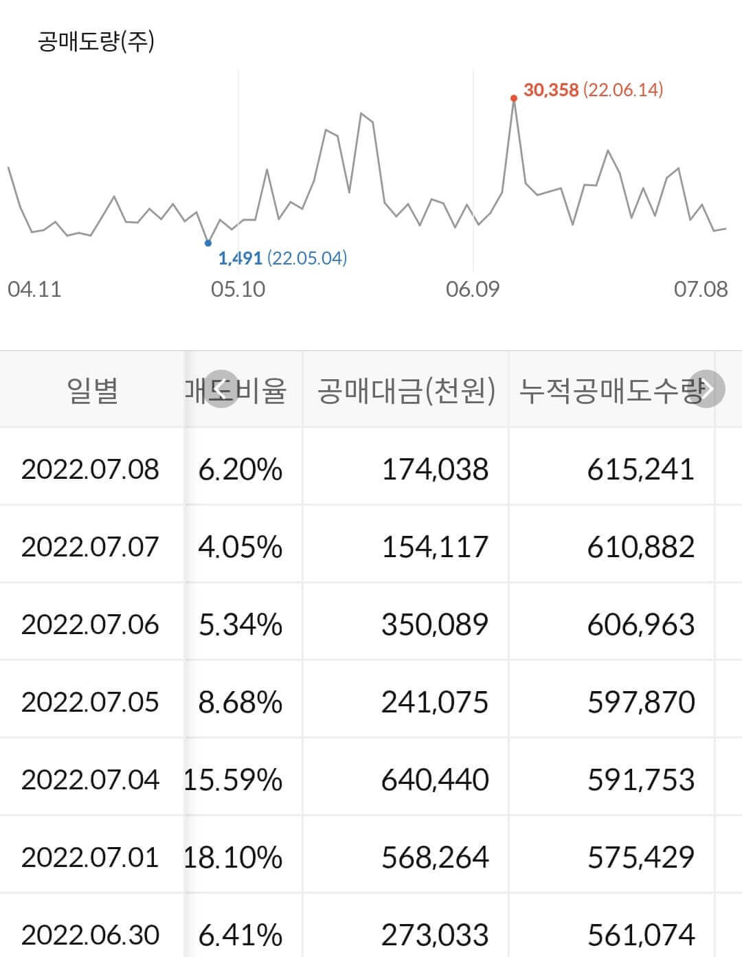 2) 공매도 누적 수급