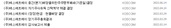 1) 종목명 : 에스에프에이