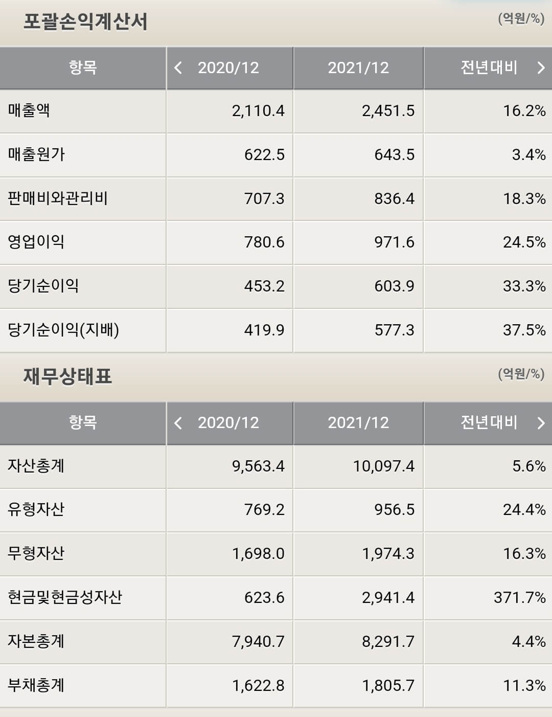 - 부채 1,805.7억(11.3% 증가)