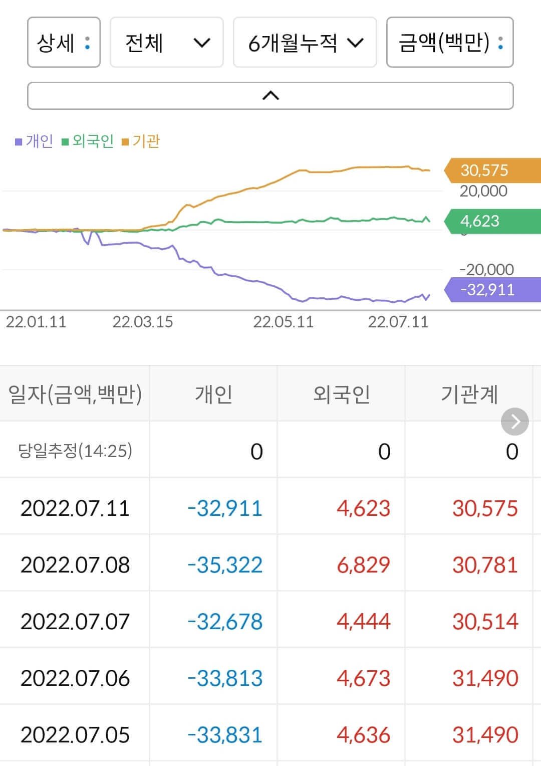 2) 공매도 누적 수급
