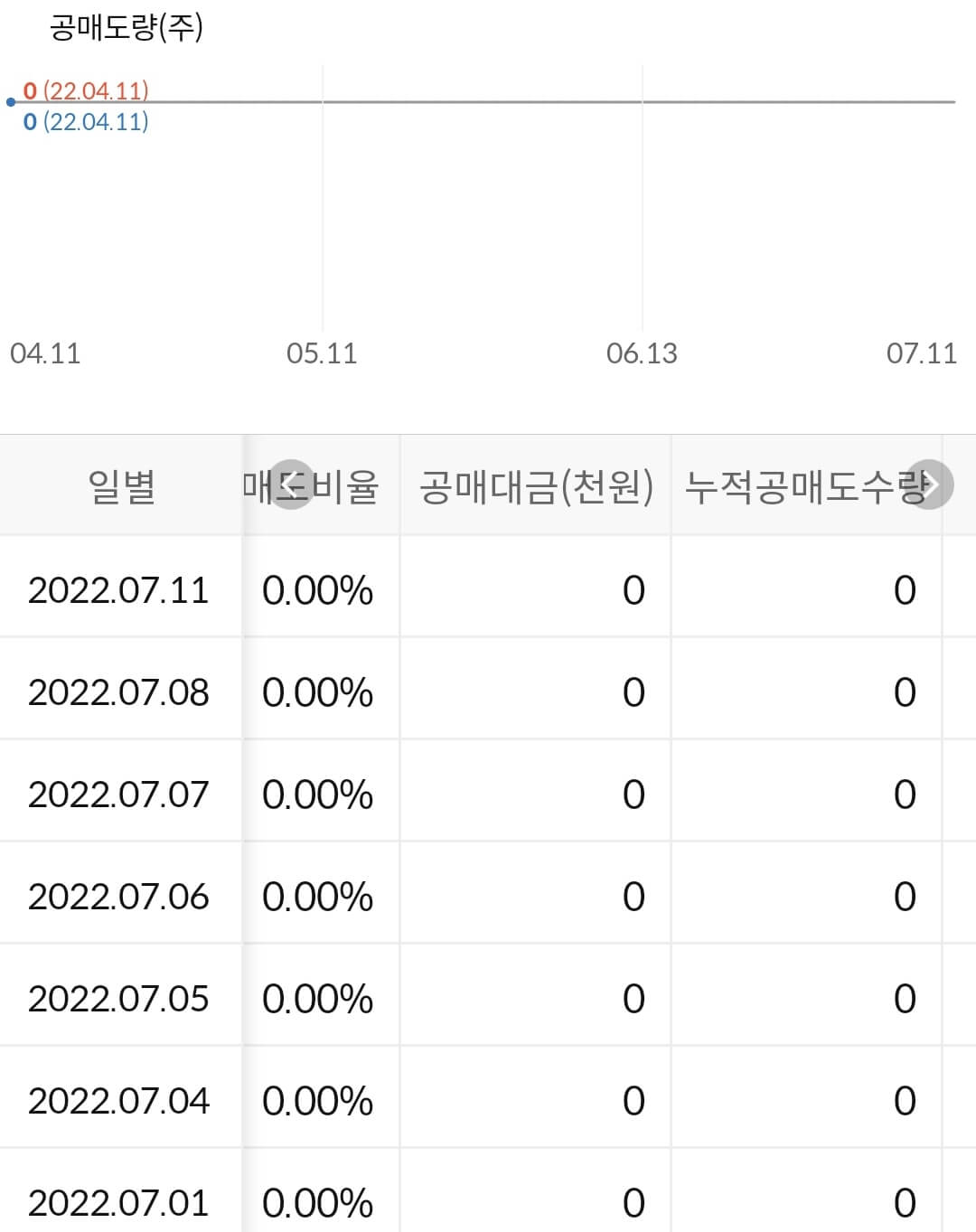 공매도 금지 종목이므로 누적 공매도 수급은 없습니다.