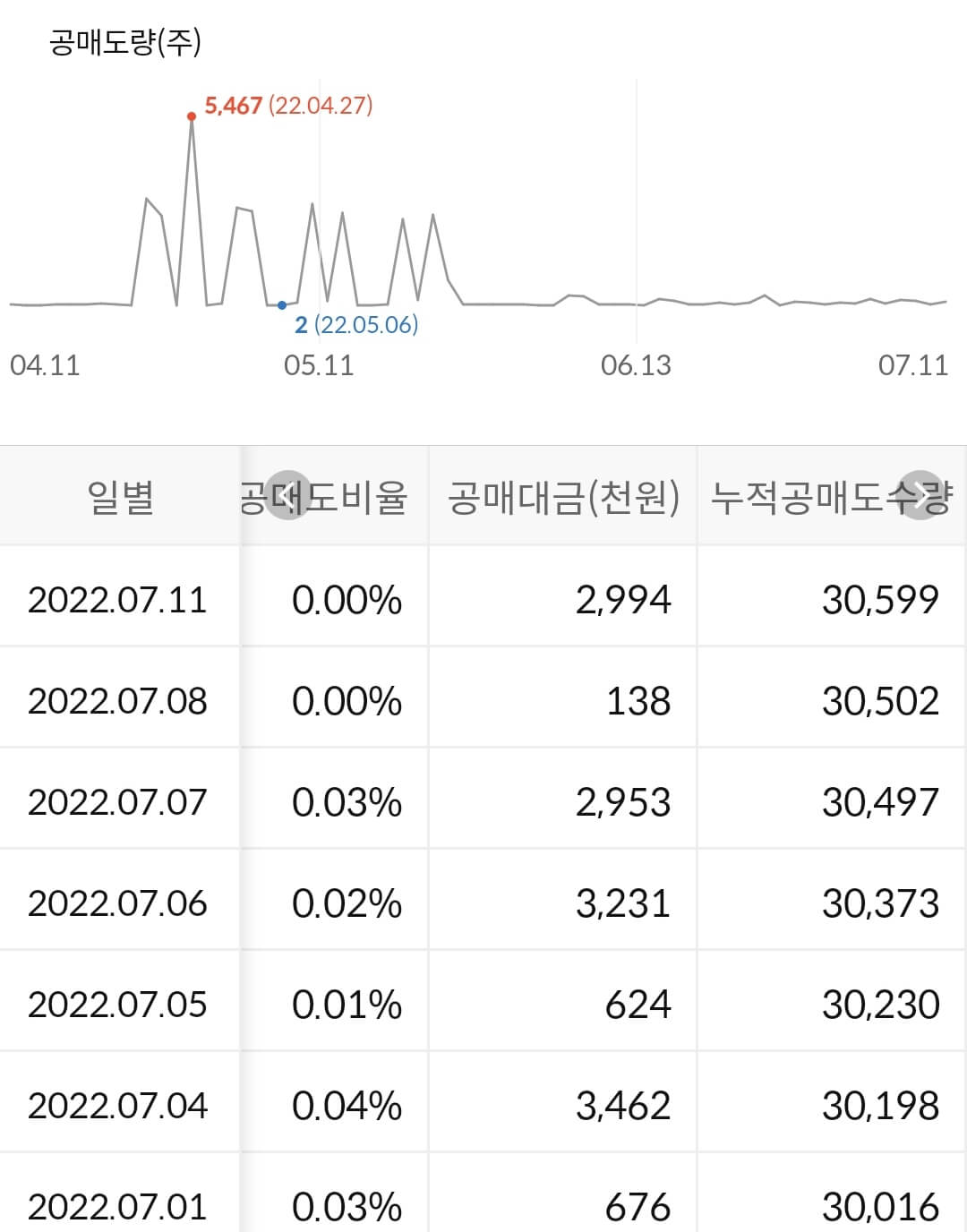 - 누적 공매도 금액은 없다고 생각하시면 됩니다.