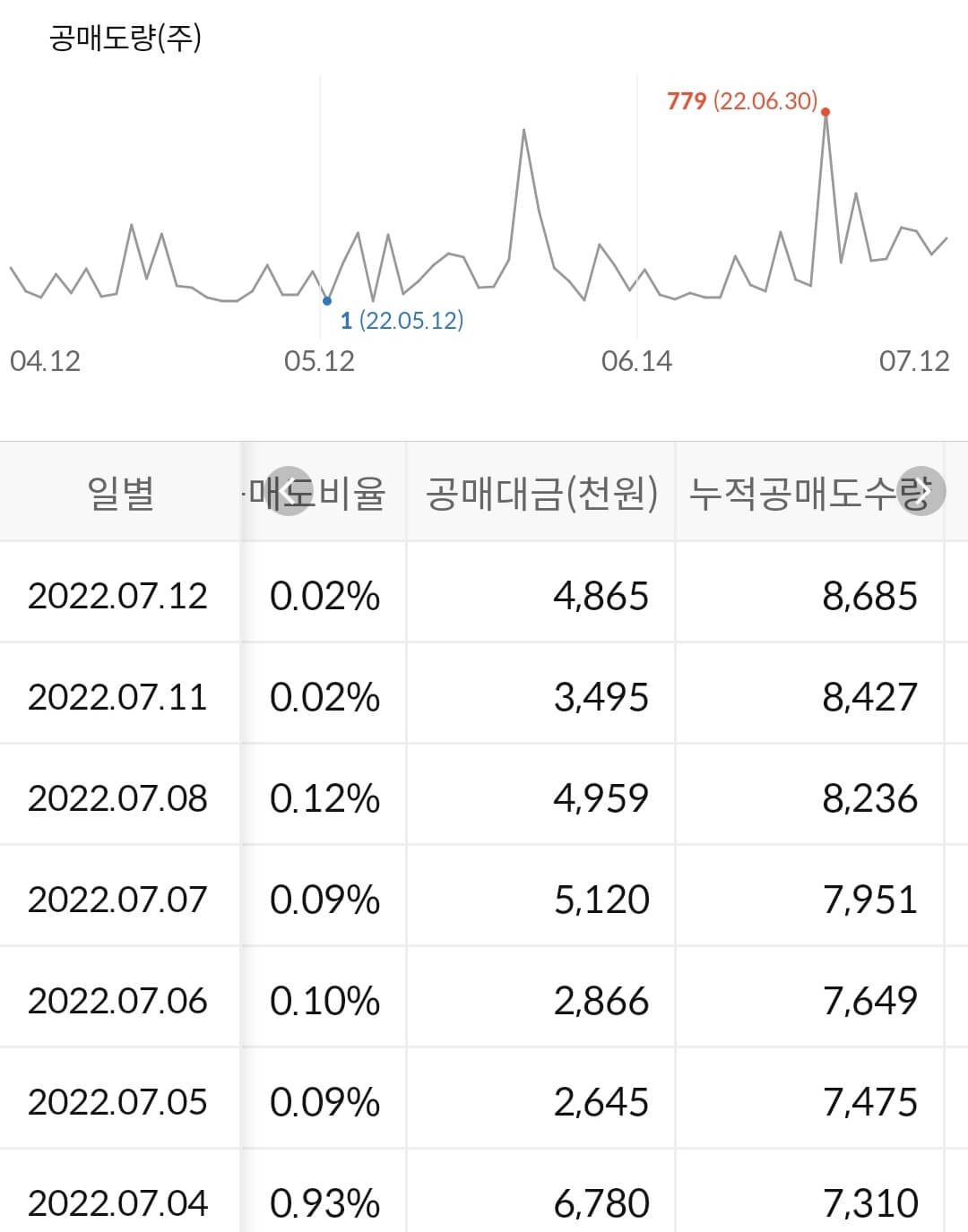 - 누적 공매도 금액은 없습니다.