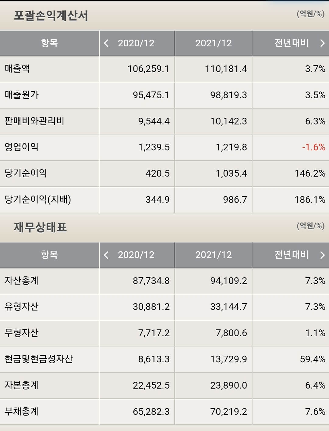 - 매출 11조181.4억(3.7% 증가)