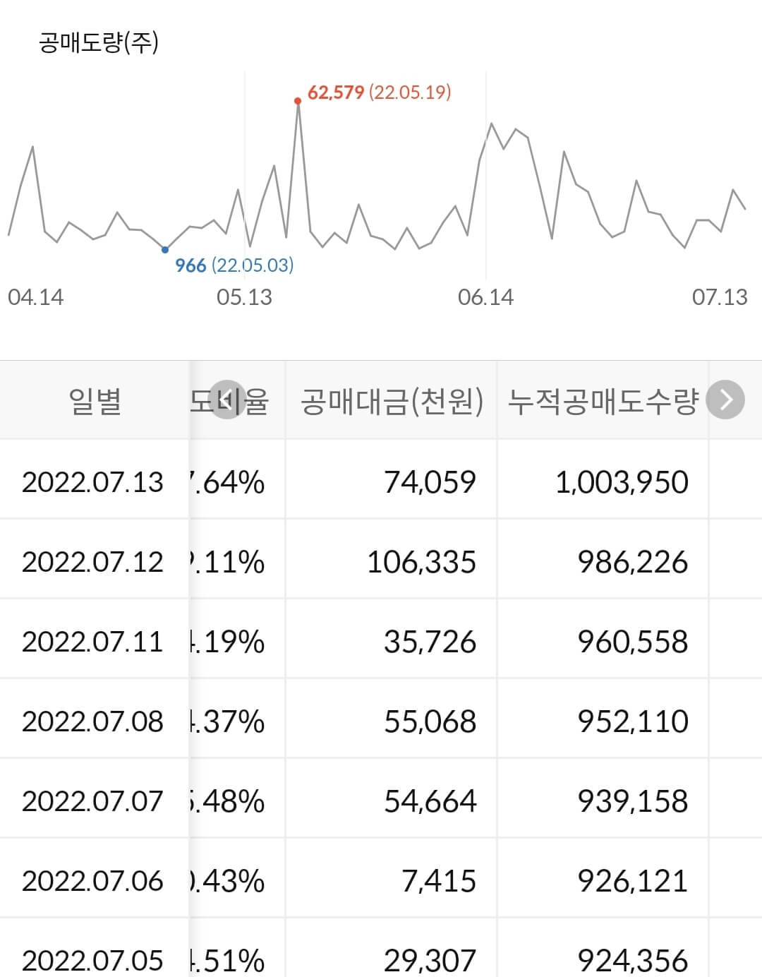 - 누적 공매도 금액은 50억으로 추산되며 이는 SK네트웍스 시총 1조 대비 0.5%에 해당