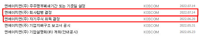 1) NHN 회사합병 결정