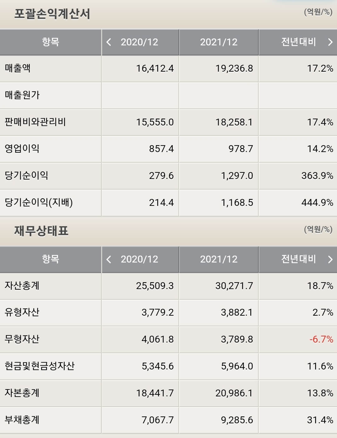 - 부채 9,285억(31.4% 증가)