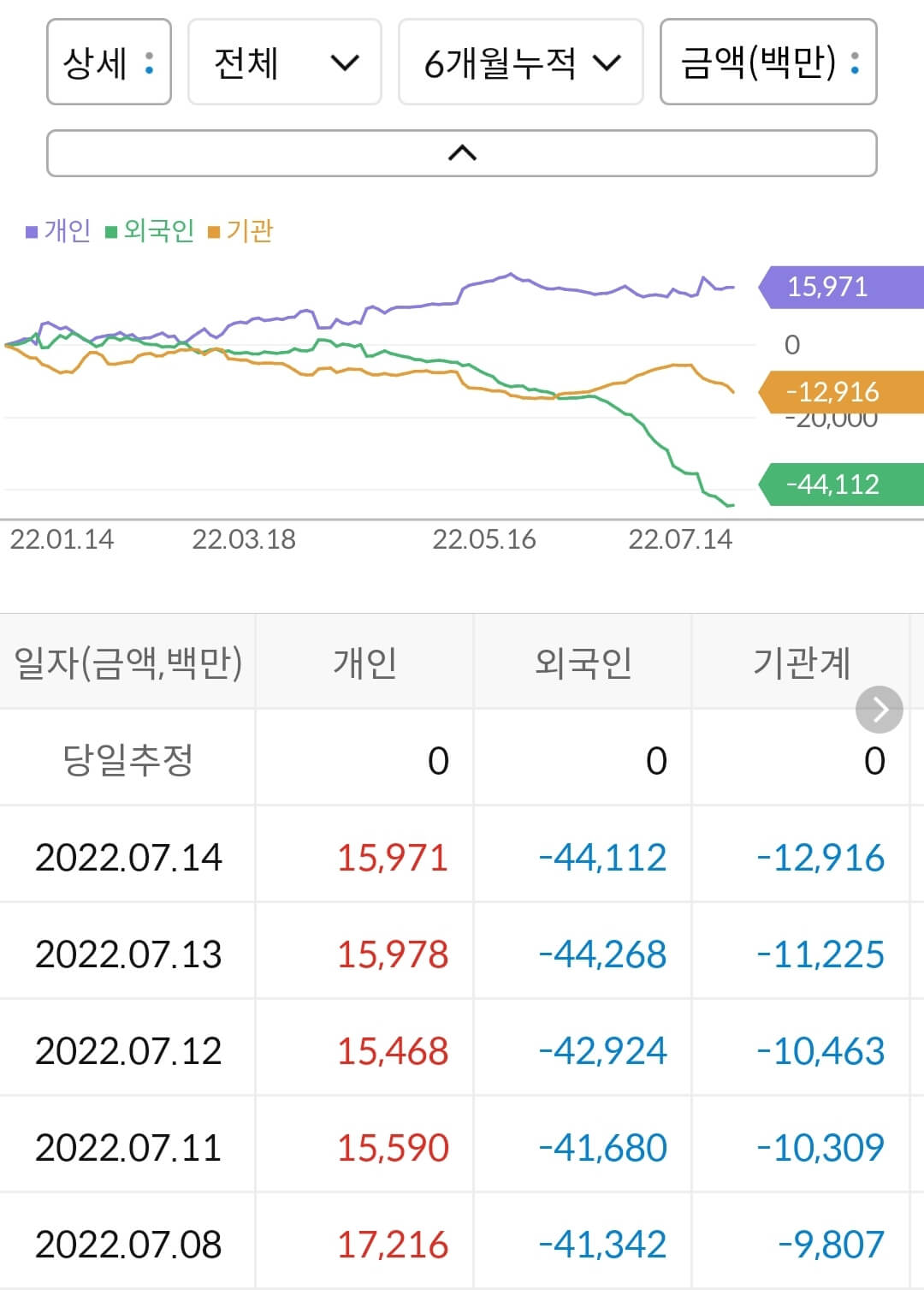 - 개인이 159억 매수, 외국인이 441억 매도, 기관이 129억 매도