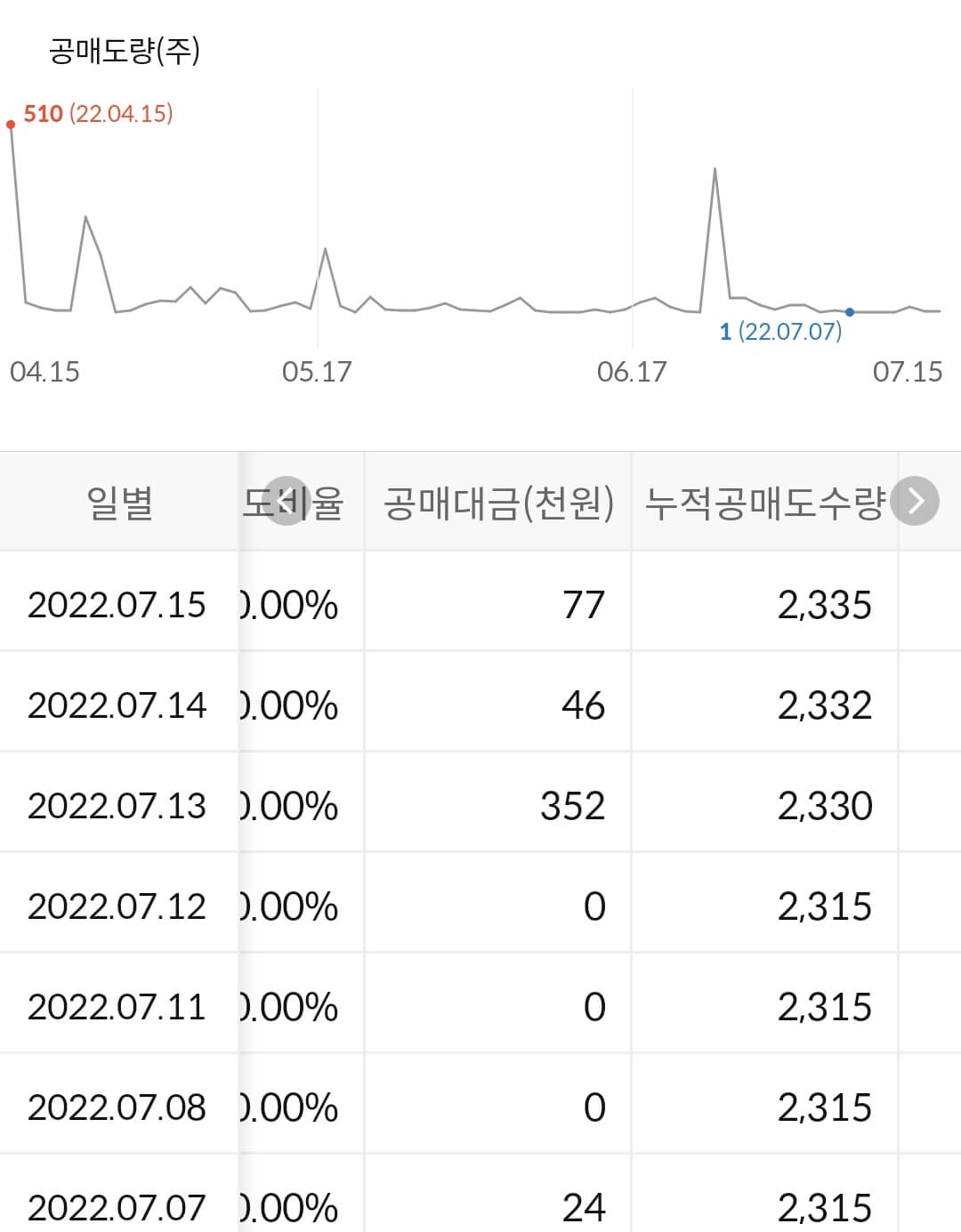 - 누적 공매도 금액은 없습니다.