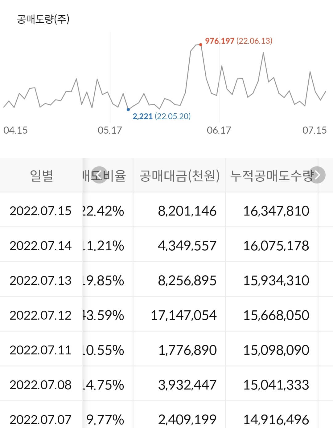 PER 420배, 기술 진입장벽 없는 종목을 공매도 세력이 가만히 둘 리가 없습니다. 공매도 누적 수급 단위가 1조를 넘어간 상황이며 앞으로도 일일 공매도 수급은 주가가 하락하자 오히려 더 증가하고 있습니다. 향후 비우호적인 시장환경으로 인해 성장이 둔화될 것이 전망되자 고 프리미엄을 더 빠르게 반납받기 위한 의도로 보입니다. 현재 공매도 세력의 수익은 상상을 초월하는 천문학적인 금액일 것으로 전망하고 있습니다.