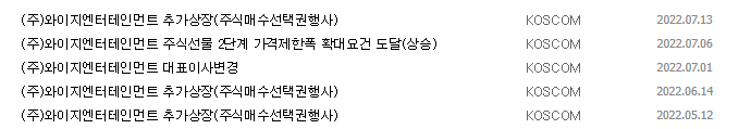1) 종목명 : 와이지엔터테인먼트