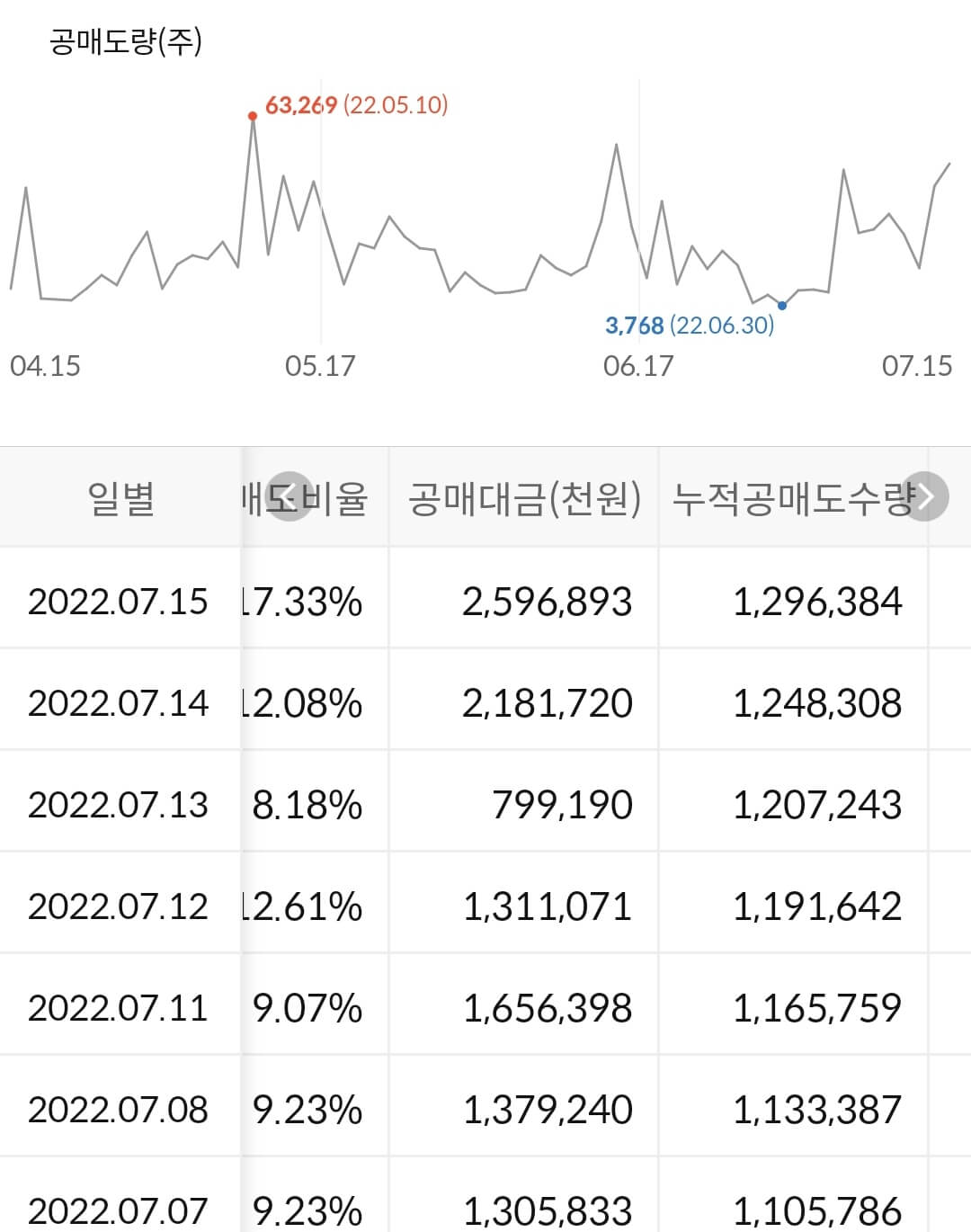 - 누적 공매도 금액은 580억으로 추산되며 이는 와이지엔터테인먼트 시총 1조 대비 5.8%에 해당