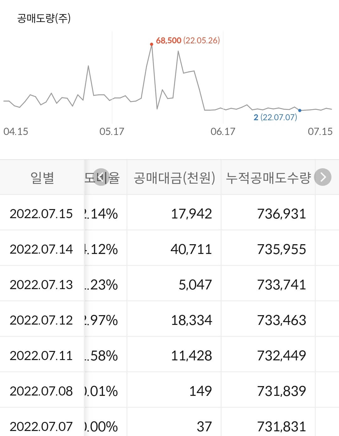 주가가 과도하게 하락한 상황이므로 일일 공매도 수급은 현재 많지는 않습니다. 다만 가장 큰 문제는 거래량이 너무 심각하게 붙지 않고 있다는 점입니다. 시장이 이렇게 무관심한 것은 공매도가 과도하게 들어오는 것보다 더 큰 악재입니다. 따라서 어떤 모멘텀이든 시장에 내놓고 거래량을 붙여야 하는 상황입니다. 다행히 하반기 신작 모멘텀이 있으므로 거래량이 붙기를 기대해보겠습니다.