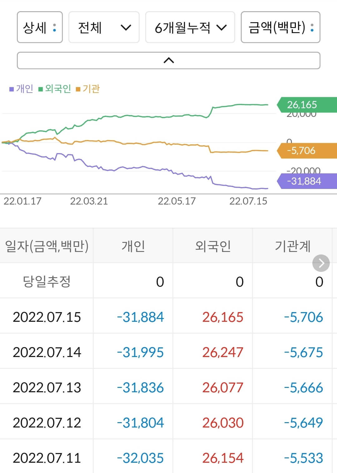 - 개인이 318억 매도, 외국인이 261억 매수, 기관이 57억 매도