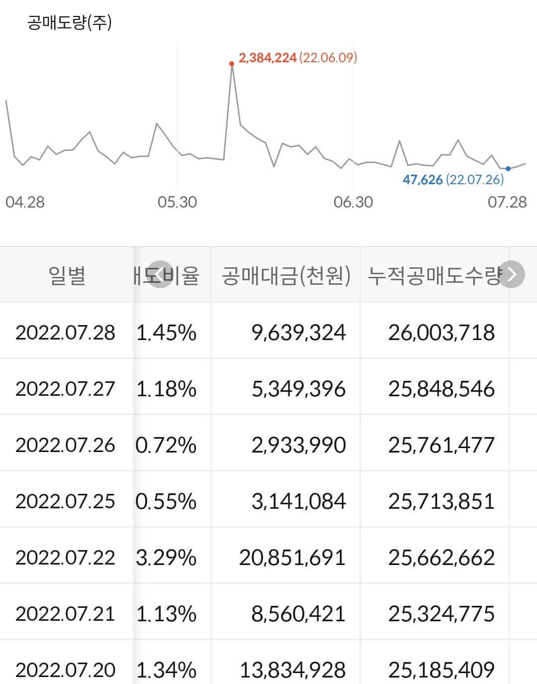 - 누적 공매도 금액은 3조로 추산되며 이는 삼성전자 시총 369조 대비 2.7%에 해당