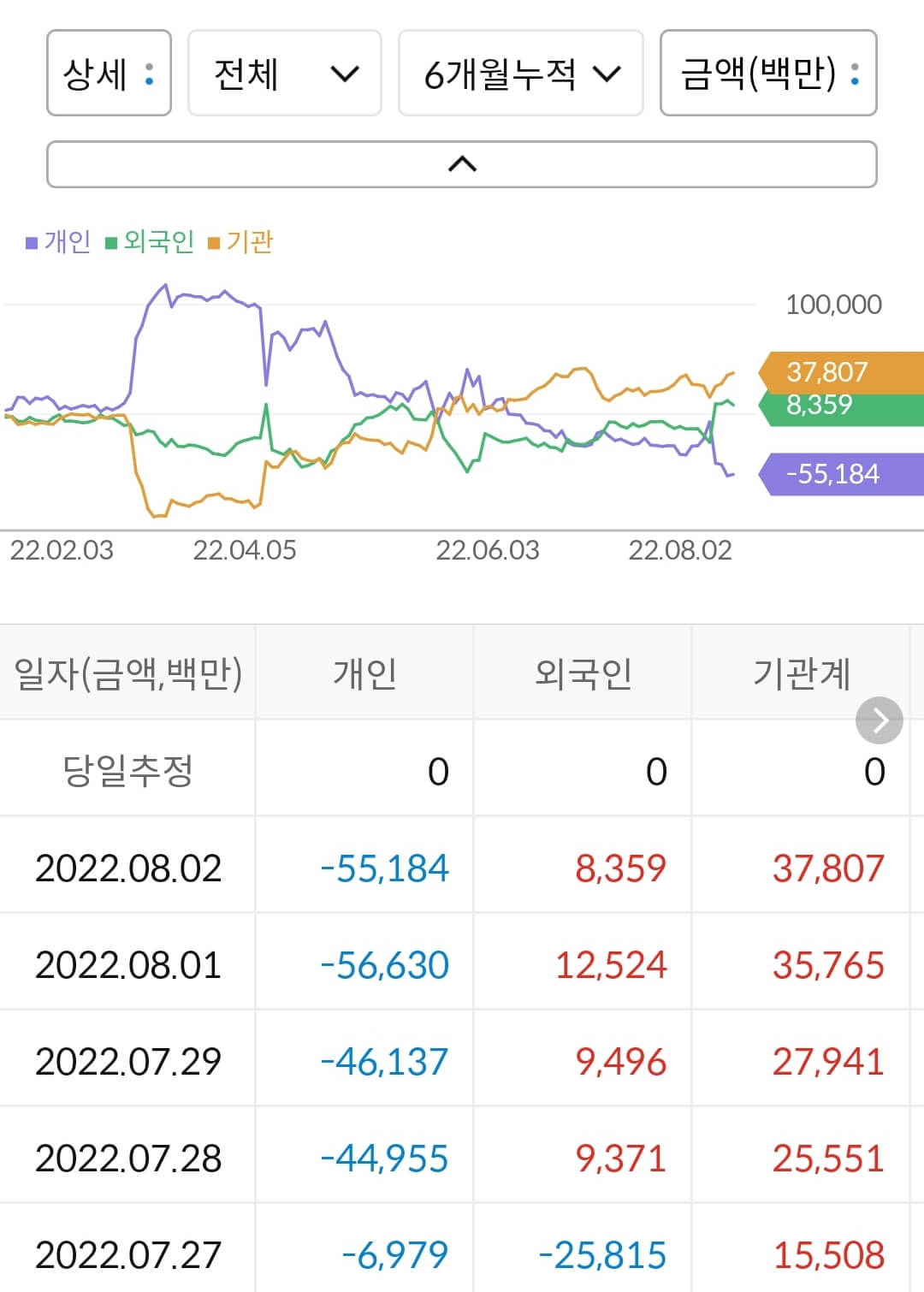 - 개인이 551억 매도, 외국인이 83억 매수, 기관이 378억 매수