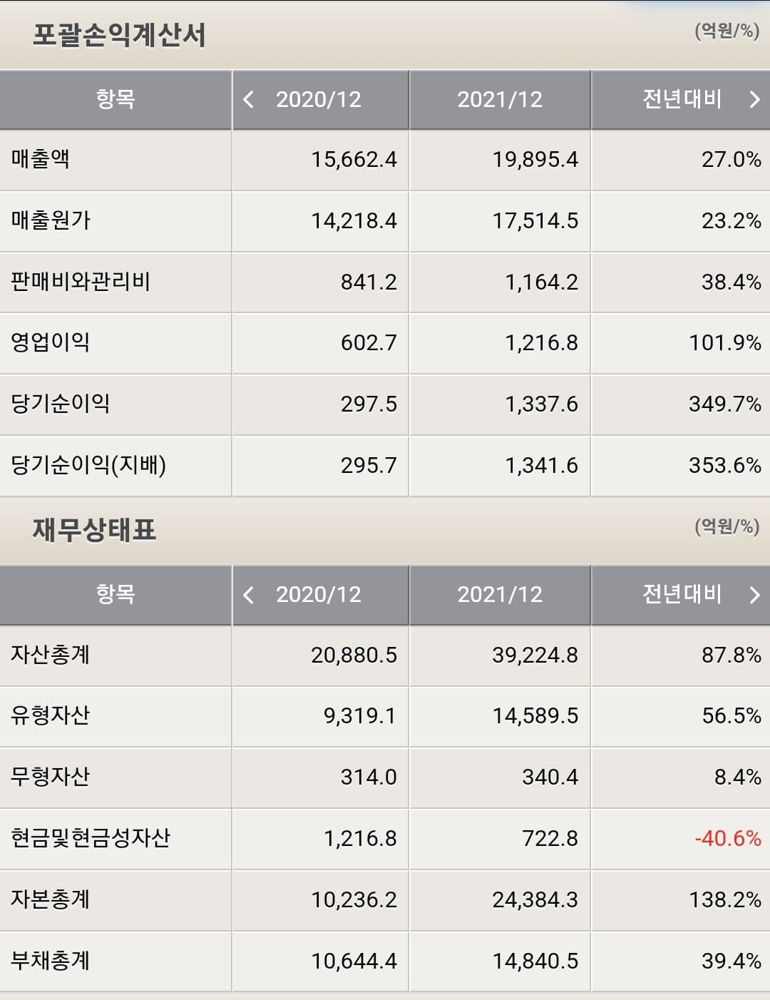 - 부채 1조 4,840억 ( 39.4% 증가)