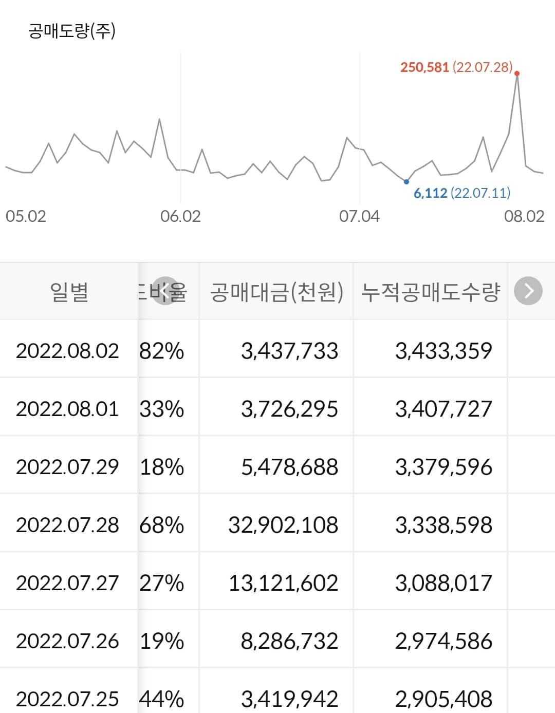 1) 적지 않은 일일 공매도 수급은 주가에 매우 부담