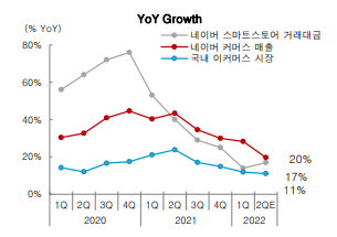 또한, 코로나로 인한 강도 높은 사회적 거리두기로 네이버 트래픽 급증과 함께 급등한 온라인 이커머스 거래대금이 21년 3분기부터 급격하게 감소하는 등 코로나로 인한 높은 기저효과가 사라질 전망이기에 실적 불확실성은 높아지고 있습니다.