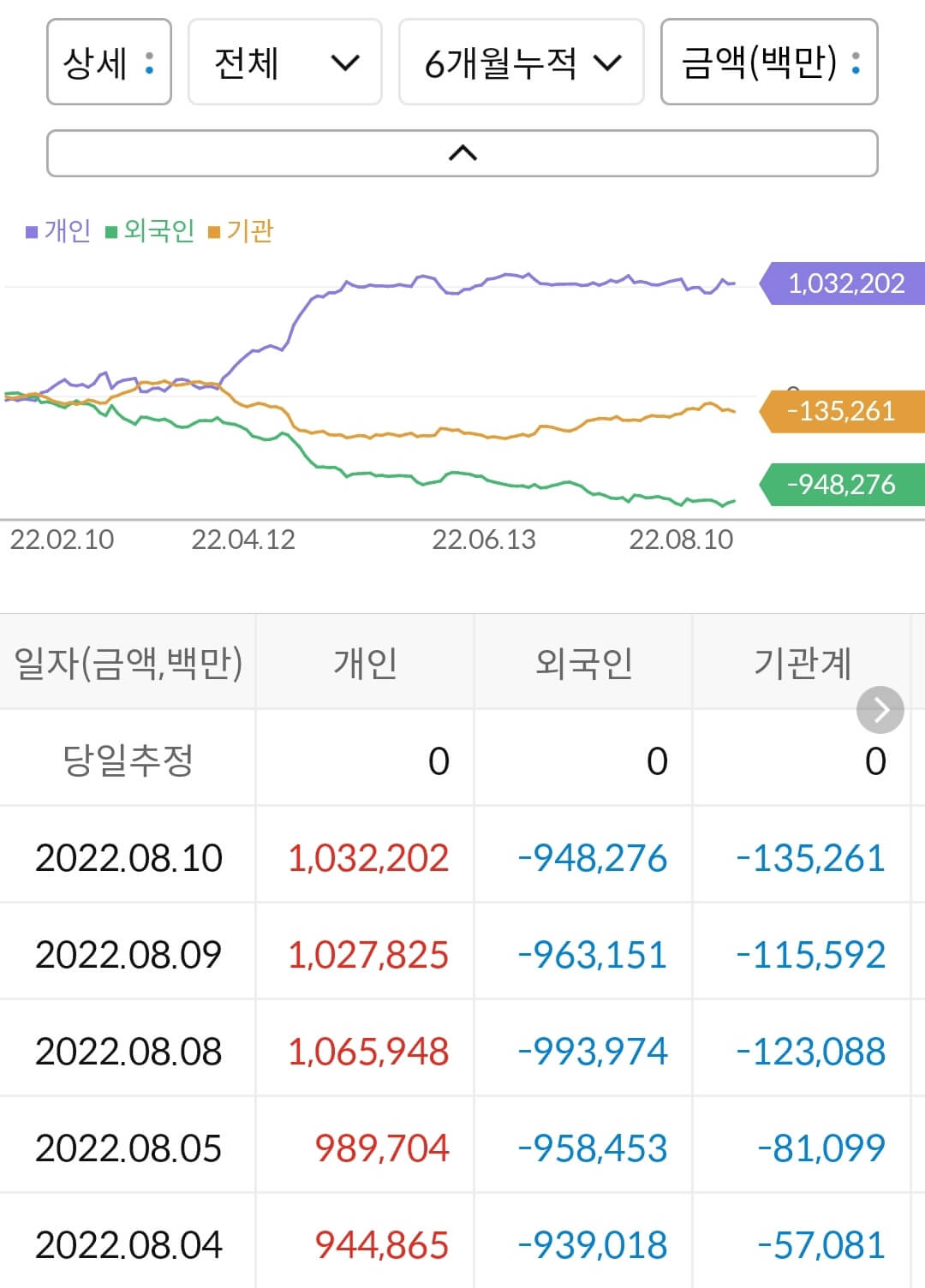 - 개인이 1조 322억 매수, 외국인이 9,482억 매도, 기관이 1,352억 매도