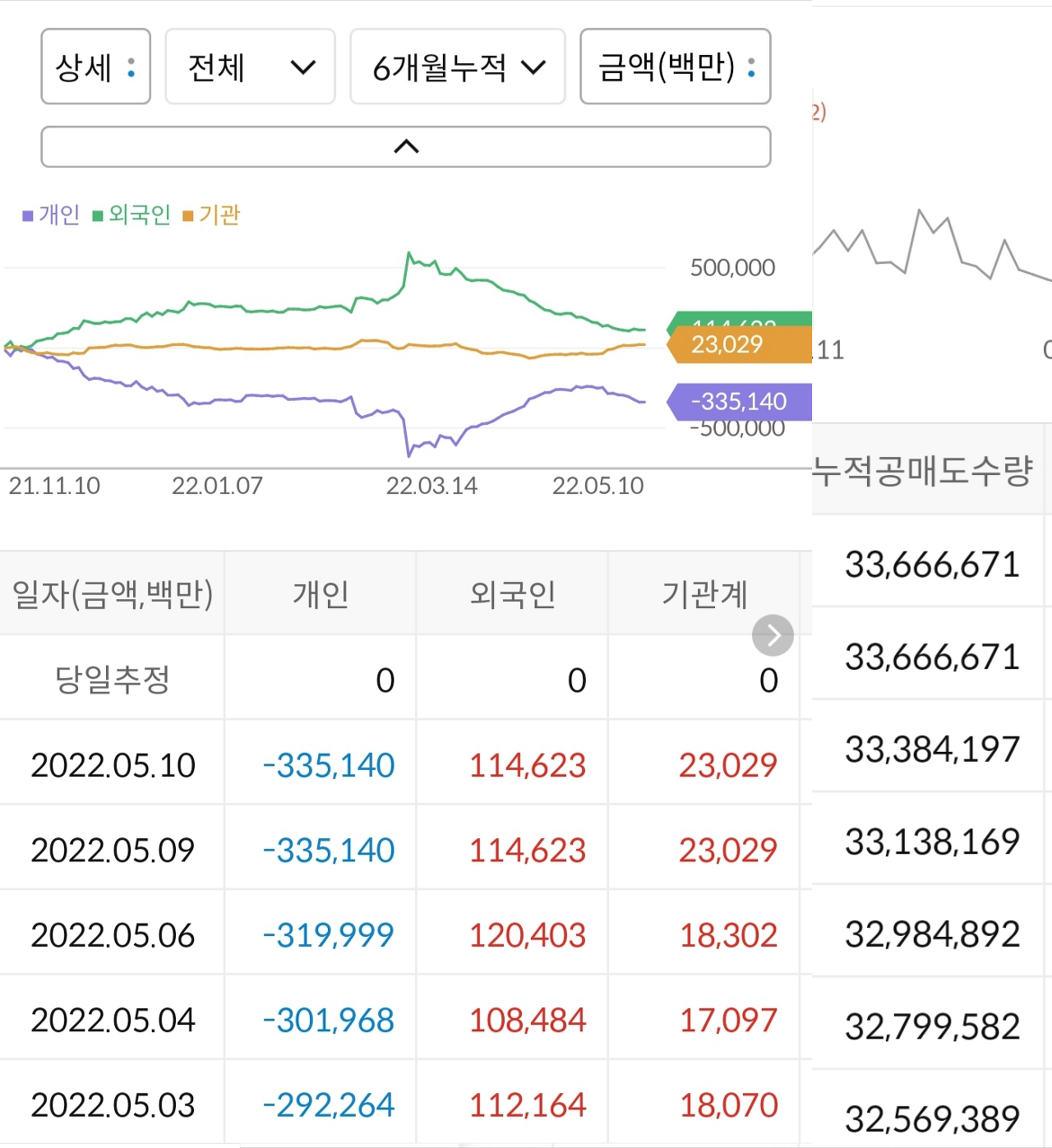 - 보통 대형주의 주가하락시에는 개인 투자자의 매수세가 붙는데 HMM은 정반대로 기관과 외국인 수급이 붙음
