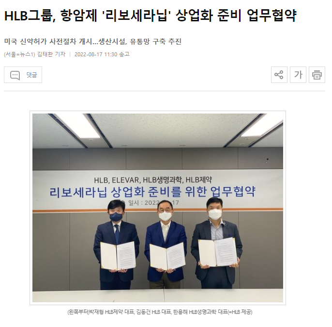 - 코로나, 금리인상, 전쟁 등과 HLB의 주가와는 아무 상관이 없습니다. 오로지 리보세라닙의 성공 여부에 따라 기업의 존폐가 달렸기에 관련 뉴스와 호재, 악재에 따라 주가는 급등 및 급락을 반복하고 있습니다. 현재 리보세라닙의 글로벌 임상 3상이 성공하면서 최근 형성한 저점 대비 주가는 50% 이상 상승한 상황입니다.