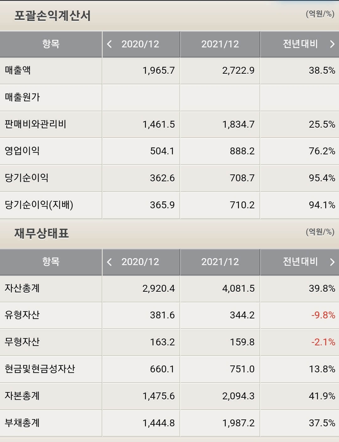 - 코로나 특수로 매출 및 수익 성장▲ 주가 249,000원대 상승