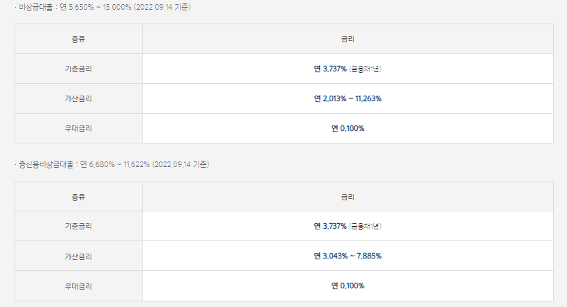 - 중신용 비상금 대출금리 : 연 6.68% ~