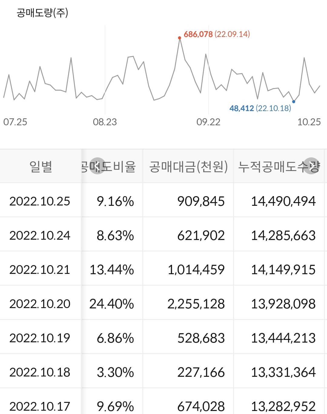 2) 공매도 누적 수급