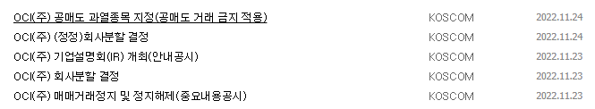 - 누적 공매도 금액은 3,500억으로 추산되며 이는 OCI 시총 2조 2,800억 대비 15.5%에 해당