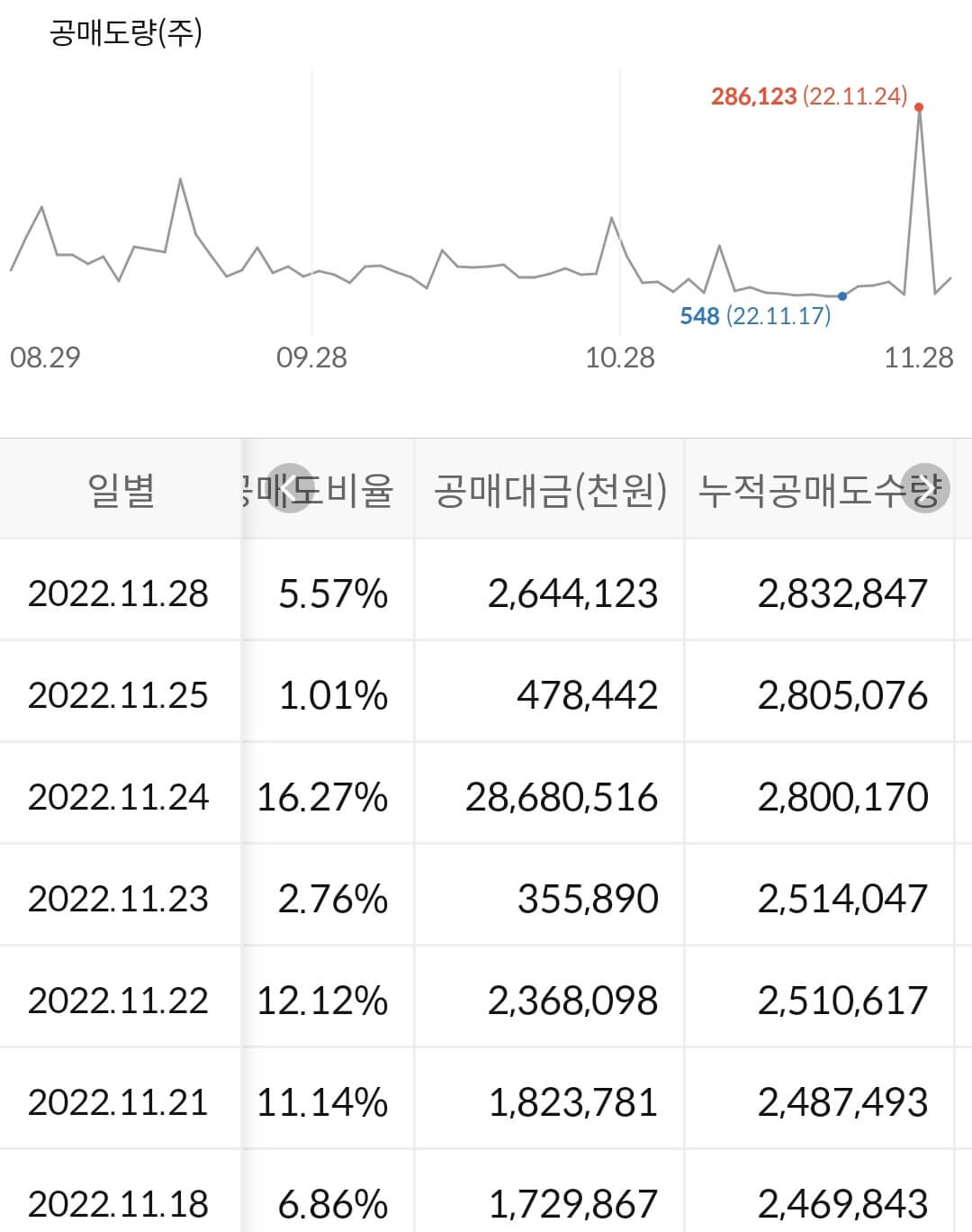 2) 공매도 누적 수급