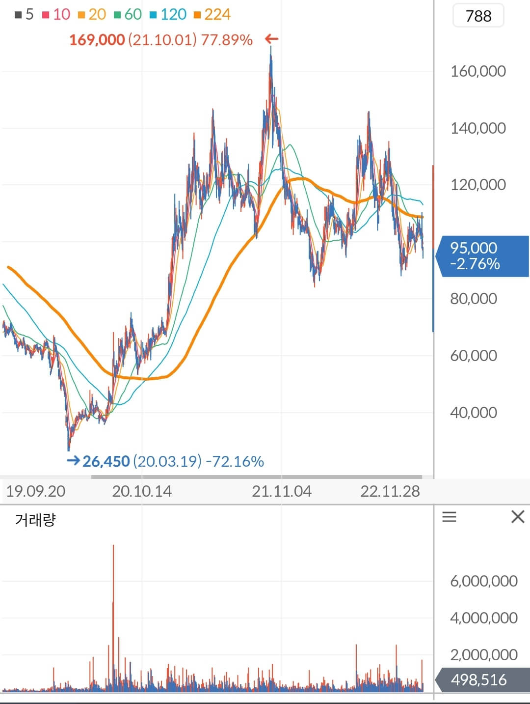 - '20년 3월 코로나 팬데믹 선언 ▼ 주가 26,450원까지 하락