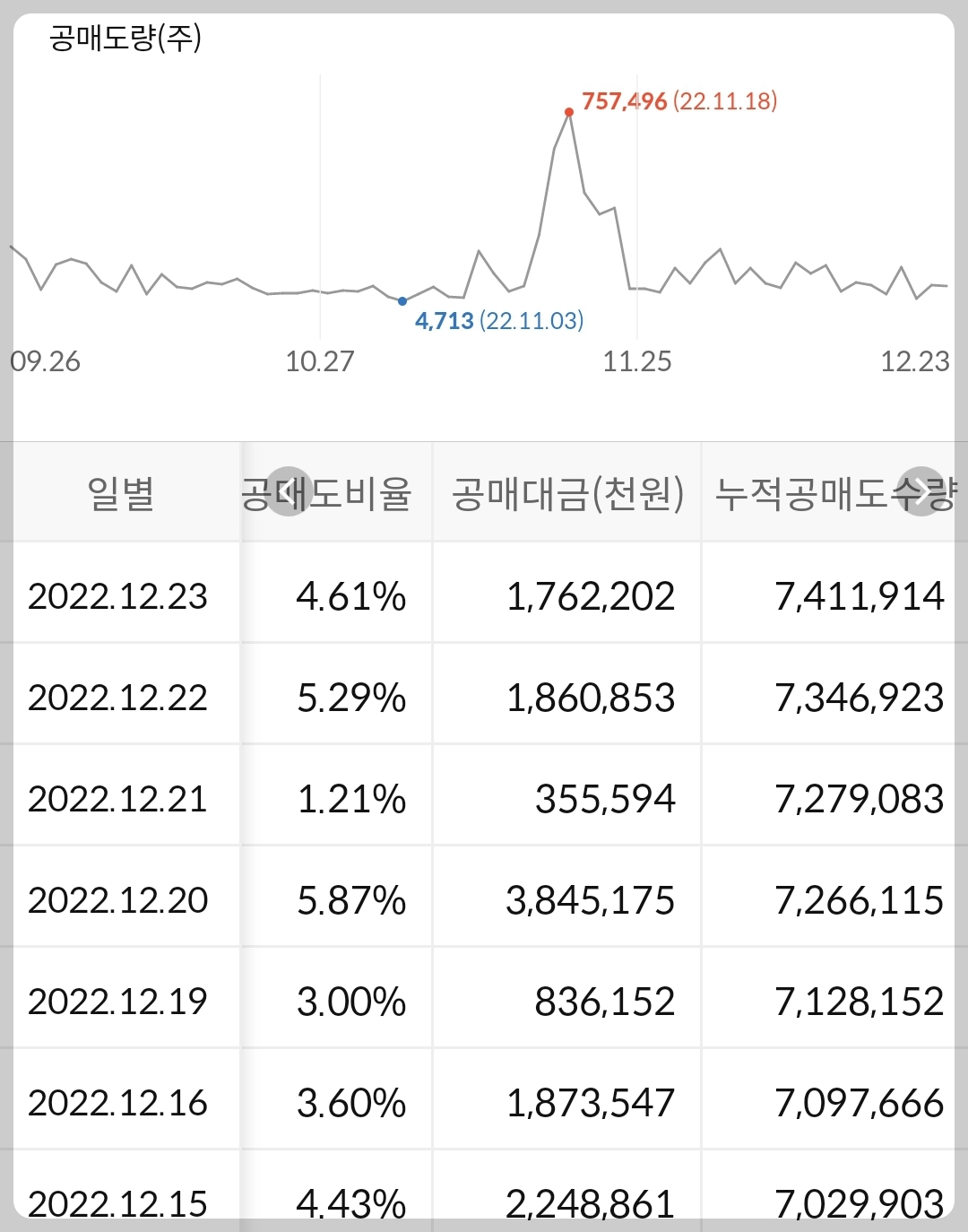 2) 공매도 누적 수급