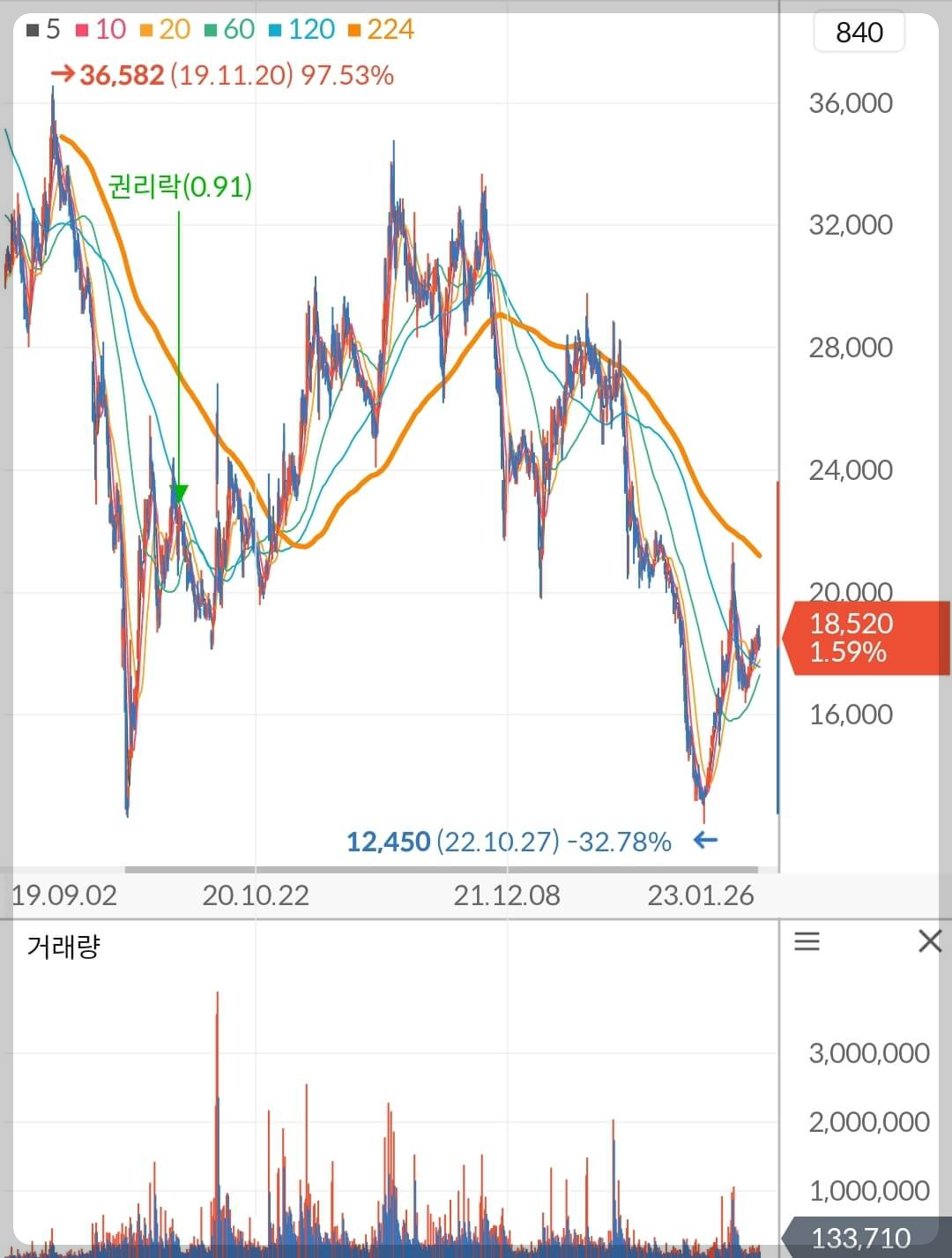 20,000원 초반대에 집중 발행된 6,000억 규모의 전환사채는 주가가 상승할수록 주식전환 권리를 행사할 것이기에 전환사채 물량을 시장에서 소화하려면 굉장히 오랜 시간이 필요할 것임을 다시 한번 말씀드립니다.