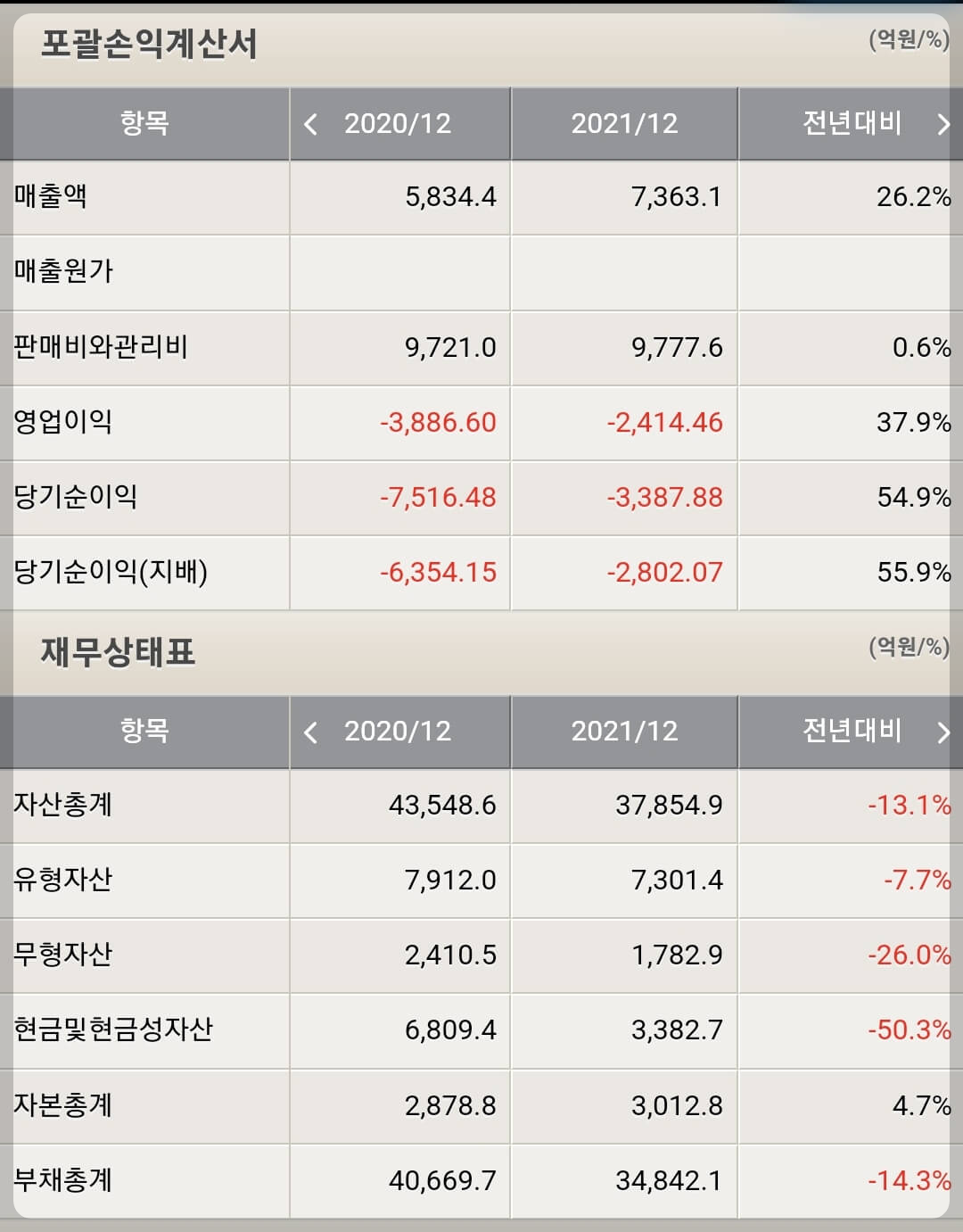 1) 과도한 부채로 인해 당기순이익 적자 최소 3년간 확정